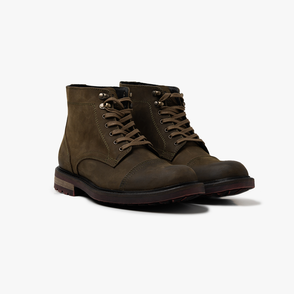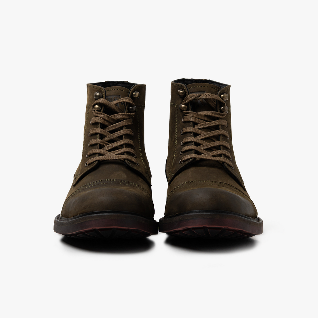 Detalle de marca en lengua.                                                                                       Material Exterior: Piel Corte Vacuno Crazy